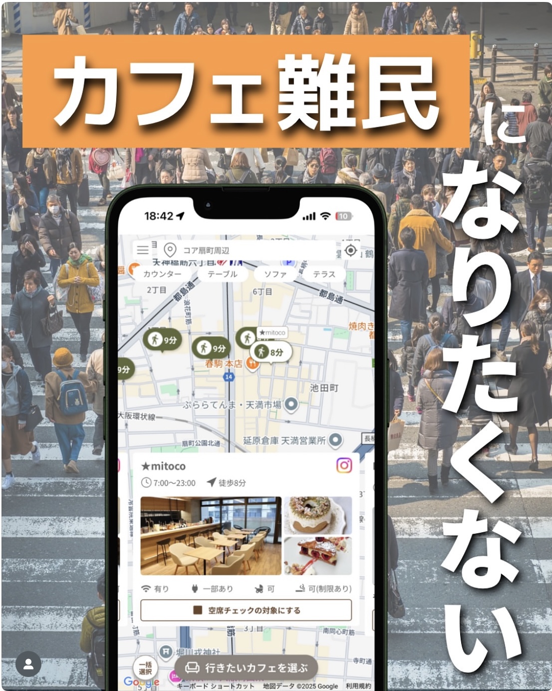 このサービスを利用することで、店舗にイマ、カフェが空いているか?を気軽に直接尋ねることができ、気になるカフェの混雑状況をリアルタイムで把握することができます!