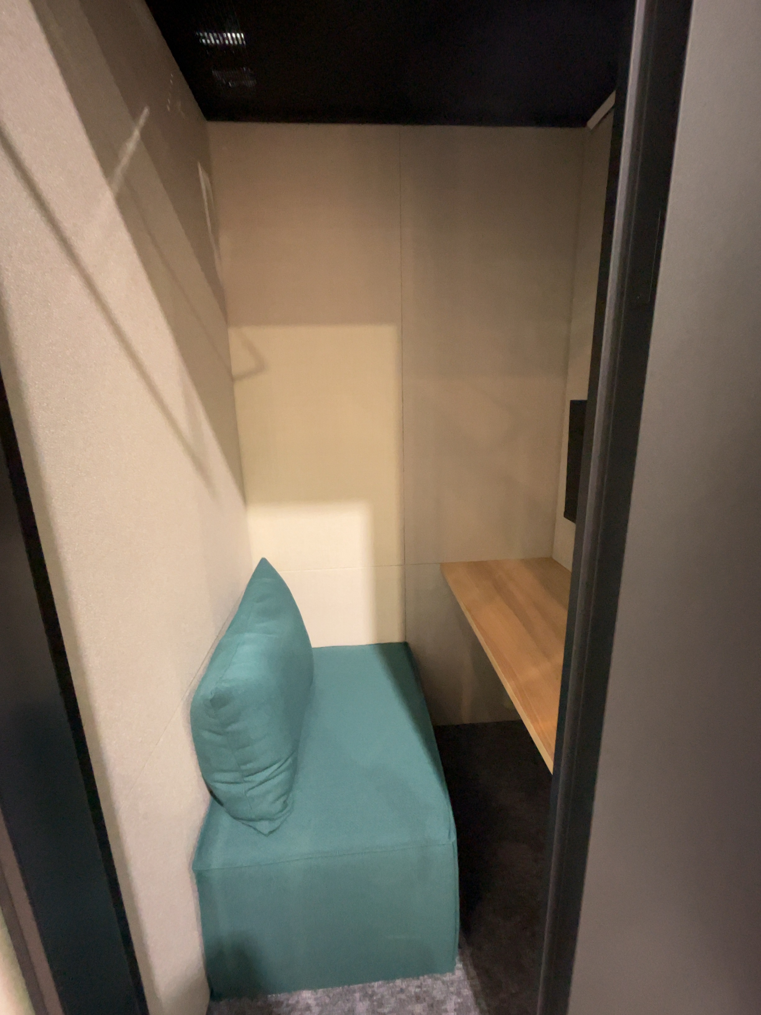 ブース内にはクッション付きのソファにモニターも設置しておりますので